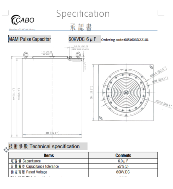 High Energy Pulse Capacitor/6uF60KVdcHigh Energy Pulse Capacitor/6uF60KVdcCategories: CABO capacitor , MAM series Machine: High Voltage Capacitor Banks Design: Square type Features: